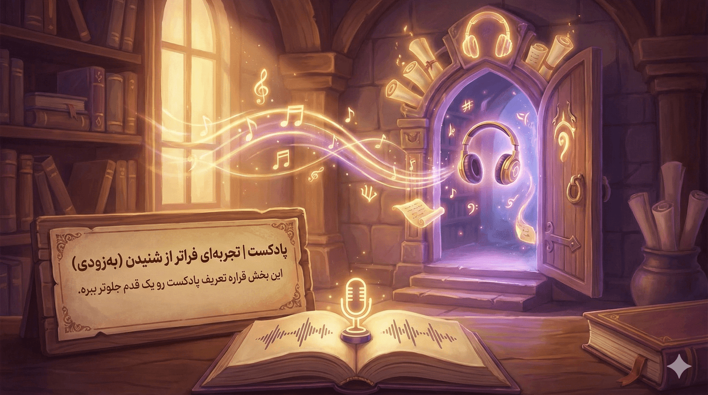 این بخش قراره تعریف پادکست رو یک قدم جلوتر ببره. اینجا فقط قرار نیست چیزی برای گوشدادن پیدا کنی؛ قراره وارد فضا بشی، روایت رو ببینی، صدا رو حس کنی و با محتوا ارتباط بگیری.