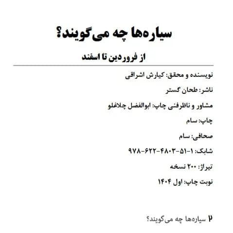 اگر متولد آذر هستید یا کسی را میشناسید که در این ماه پرشور به دنیا آمده، سیاره ها چه میگویند ؟ (آذر) این کتاب کارت صوتی میتواند پلی باشد به سوی درک عمیقتر از ویژگیهای ذاتی، احساسات و مسیر درونی متولدین این ماه.